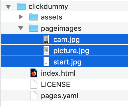 As a default clickdummy loads an image with the name of the page as a page background. You can specify the image for the page. This allows you to use the same image in different parts of your flow.